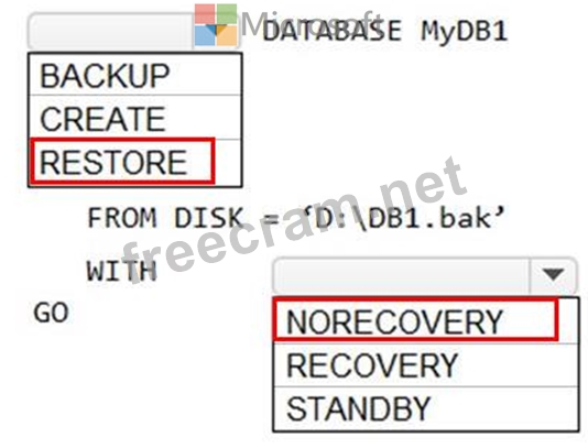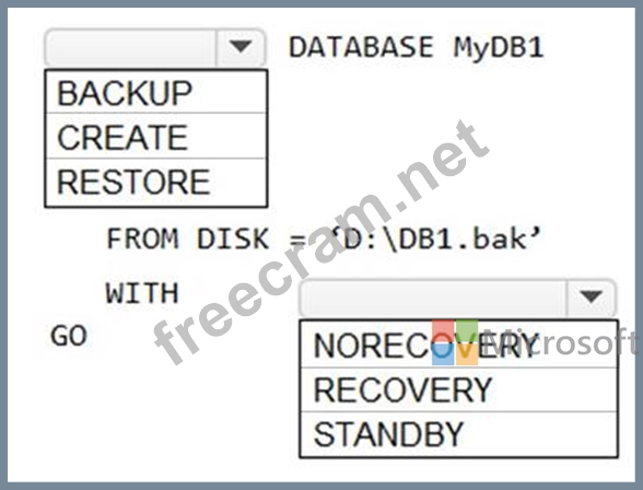 How should you complete the Transact-SQL statement? To answer, select the appropriate options in the answer area.