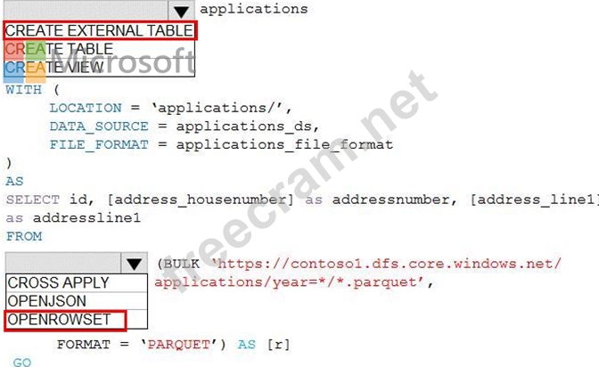 How should you complete the Transact-SQL statement? To answer, select the appropriate options in the answer area.