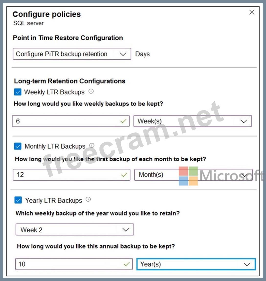 Question 28: You configure a long-term retention policy for an Azure SQL ...