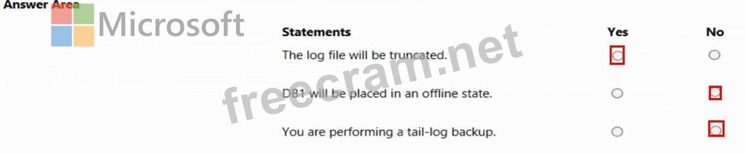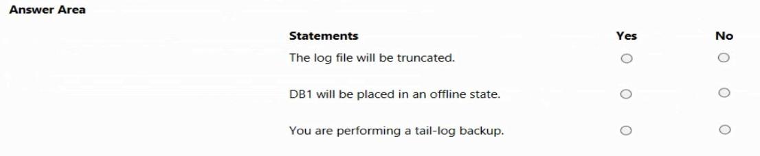 Question 84: You have a database named db1. The log for db1 contains the ...