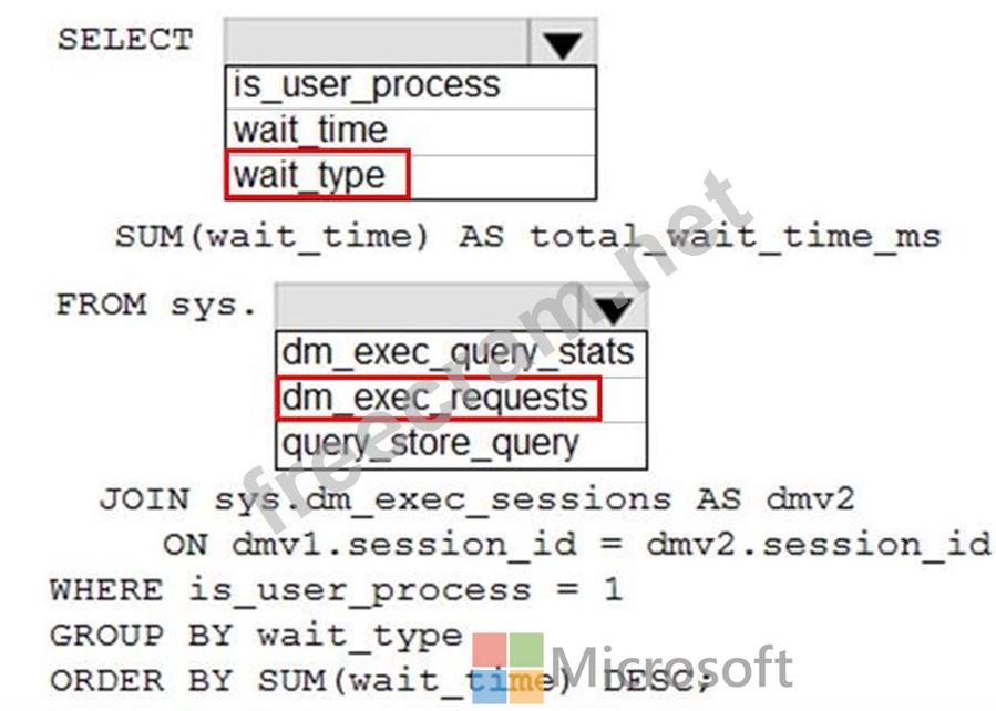 How should you complete the Transact-SQL query? To answer, select the appropriate options in the answer area.