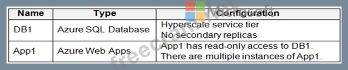Question 9: You have an Azure SQL database named DB1 that contains a tab...