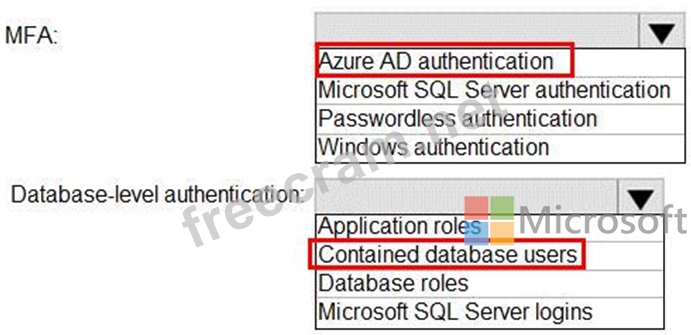 You need to recommend an authentication solution for Pool1. The solution must support multi-factor authentication (MFA) and database-level authentication.