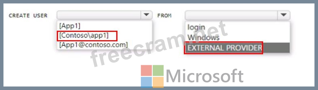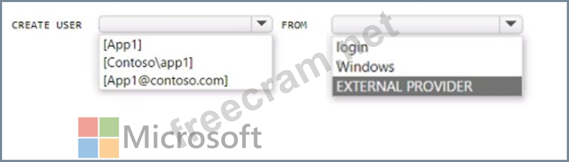 You have an Azure subscription that is linked to an Azure AD tenant named contoso.com. The subscription contains an Azure SQL database named SQL 1 and an Azure web named app1. App1 has the managed identity feature enabled.