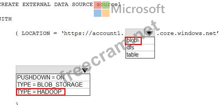 How should you complete the Transact-SQL statement? To answer, select the appropriate options in the answer area.