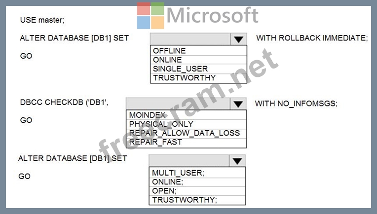 Question 59: You have a Microsoft SQL Server 2019 database named DB1 and ...