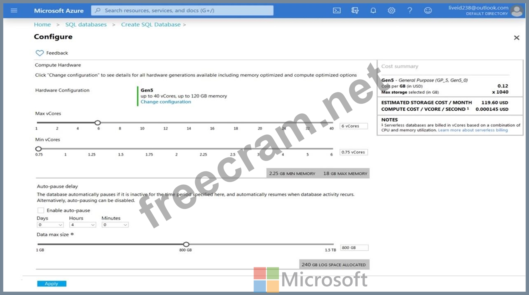 You are provisioning an Azure SQL database in the Azure portal as shown in the following exhibit.