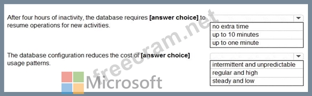 Question 8: You need to recommend a configuration for ManufacturingSQLDb...