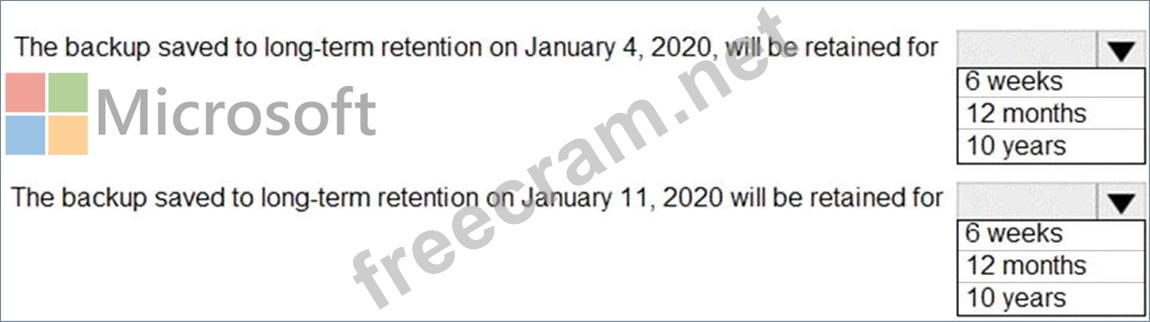 Question 50: You configure a long-term retention policy for an Azure SQL ...
