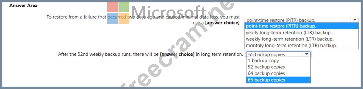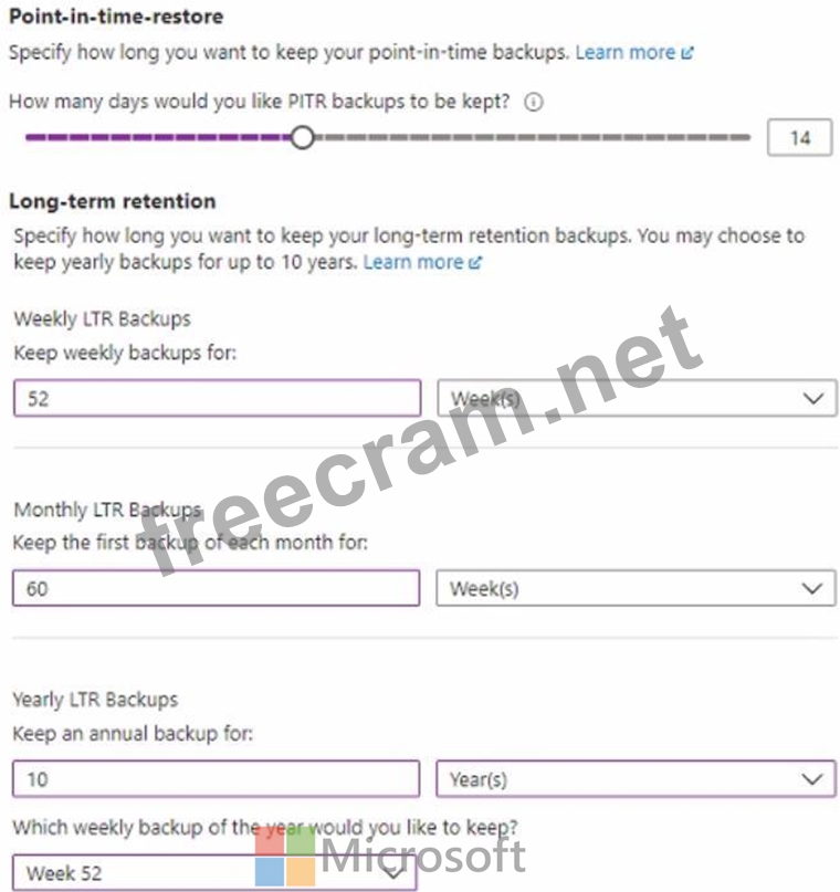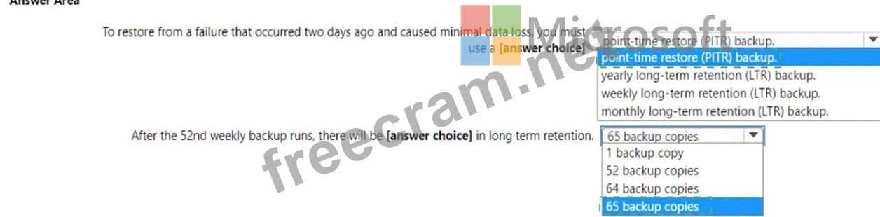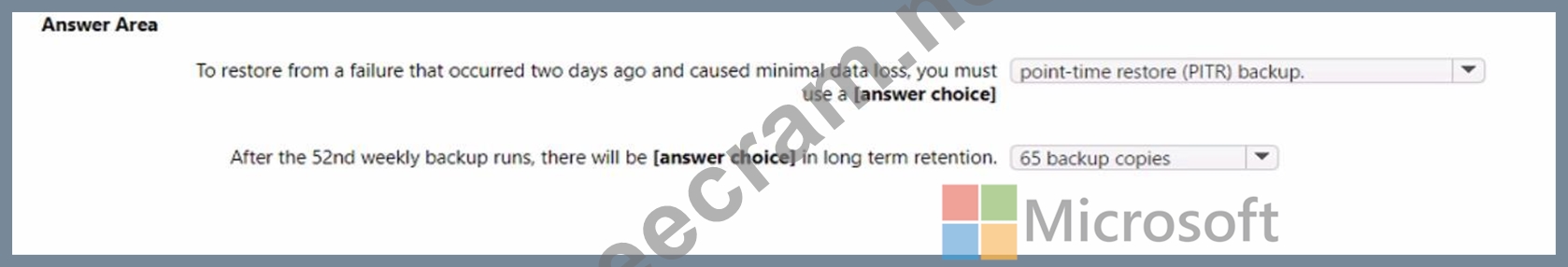 Question 50: You configure a long-term retention policy for an Azure SQL ...