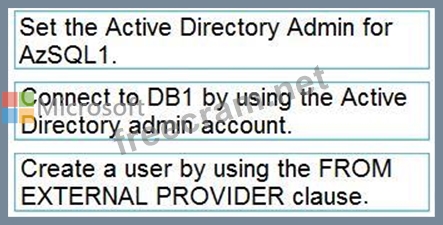 You need to create a contained database user in DB1 who will use Azure Active Directory (Azure AD) for authentication.