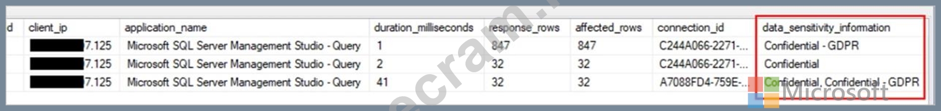 A: An important aspect of the information-protection paradigm is the ability to monitor access to sensitive data. Azure SQL Auditing has been enhanced to include a new field in the audit log called data_sensitivity_information. This field logs the sensitivity classifications (labels) of the data that was returned by a query. Here's an example: