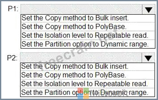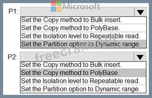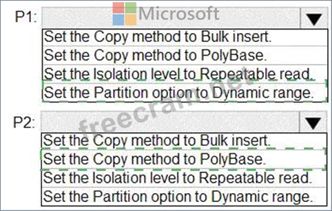 P1:Uses a copy activity to copy data from a nonpartitioned table in a dedicated SQL pool of WS1 to an Azure Data Lake Storage Gen2 account P2:Uses a copy activity to copy data from text-delimited files in an Azure Data Lake Storage Gen2 account to a nonpartitioned table in a dedicated SQL pool of WS2 You need to configure P1 and P2 to maximize parallelism and performance.