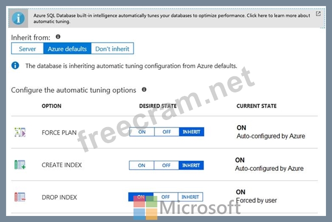 Question 59: You have an Azure SQL database named DB1. The automatic tuni...