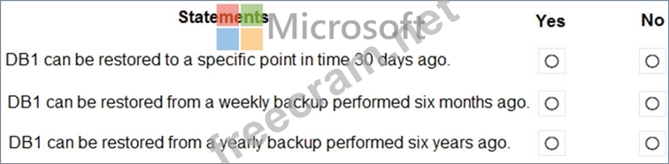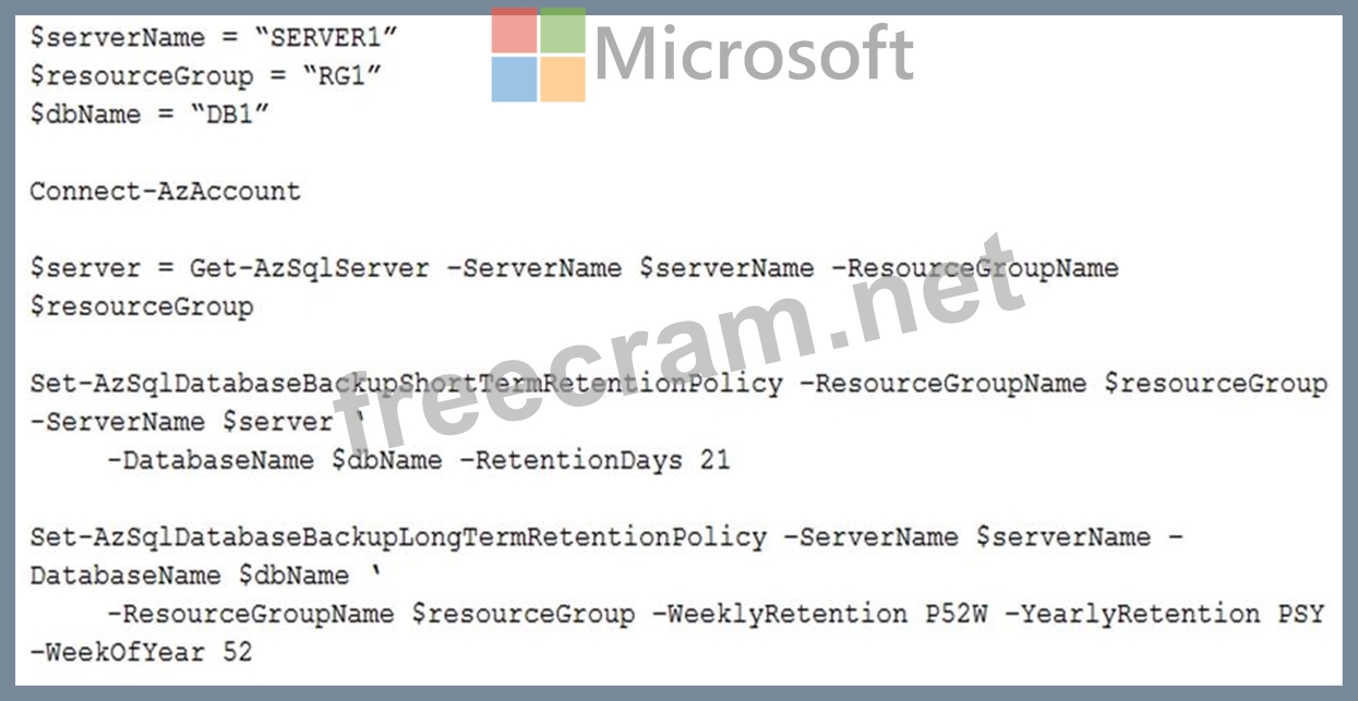 Question 50: You configure a long-term retention policy for an Azure SQL ...