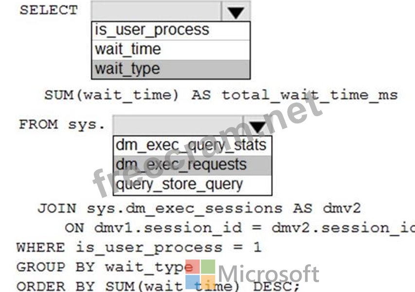 How should you complete the Transact-SQL query? To answer, select the appropriate options in the answer area.