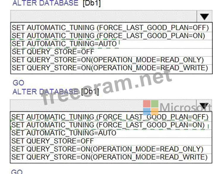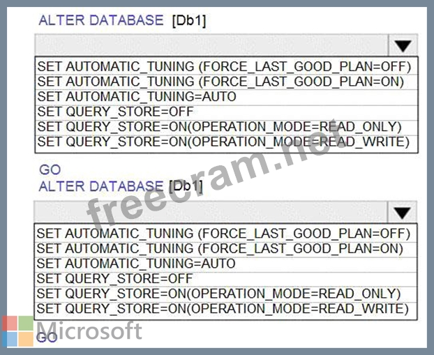 Box 2: SET AUTOMATIC_TUNING (FORCE_LAST_GOOD_PLAN = ON)