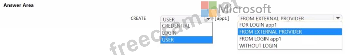 You have an Azure subscription that contains a logical SQL server. The server hosts two databases named db1 and db2 and an Azure AD service principal named app1. You need to ensure that app1 can access db1. The solution must use the principle of least privilege. How should you complete the Transact-SQL statement? To answer, select the appropriate options in the answer area. NOTE: Each correct selection is worth one point.