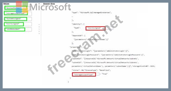You need to deploy an Azure SQL managed instance by using an Azure Resource Manager (ARM) template. The solution must meet the following requirements: