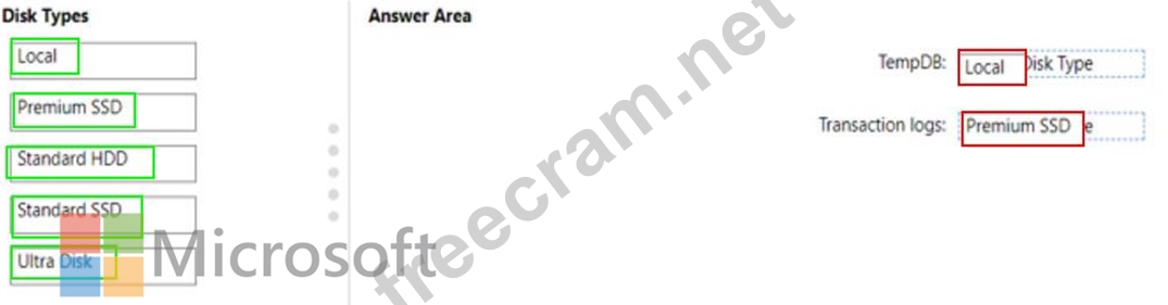 Which type of disk should you use for each workload? To answer. drag the appropriate disk types to the correct workloads. Each disk type may be used once, at all. You may need to drag the split bar between panes or scroll to view content.