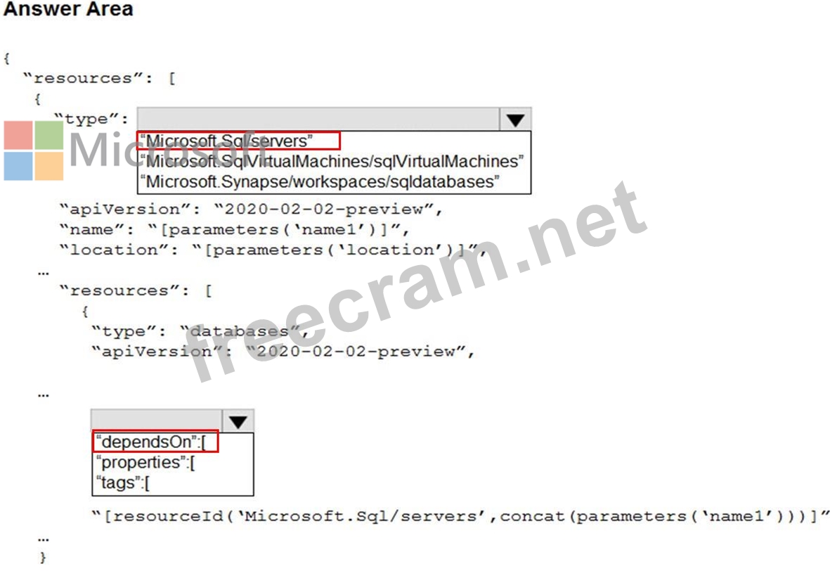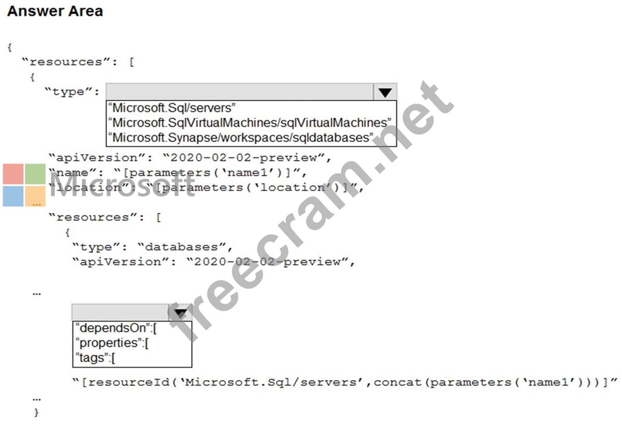 How should you complete the template? To answer, select the appropriate options in the answer area.