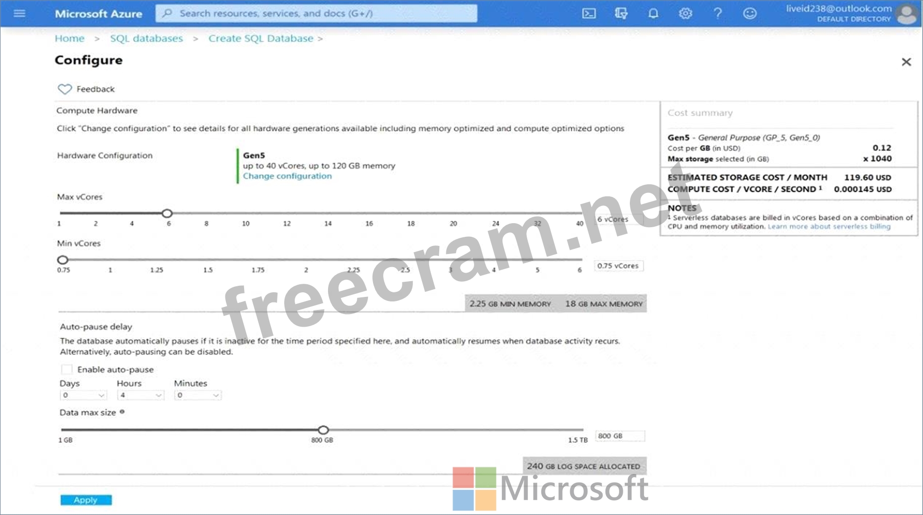 You are provisioning an Azure SQL database in the Azure portal as shown in the following exhibit.