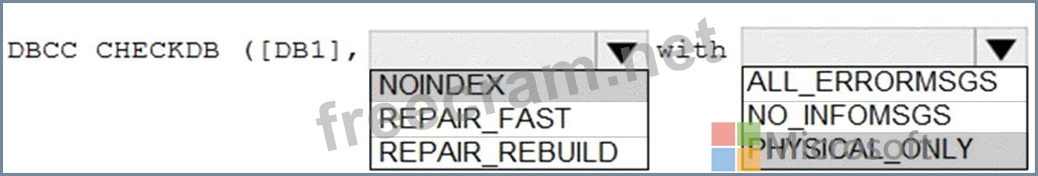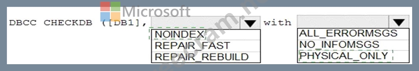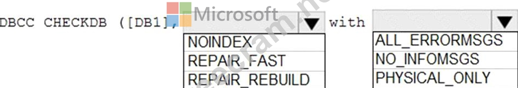 Which Transact-SQL command should you run? To answer, select the appropriate options in the answer area.
