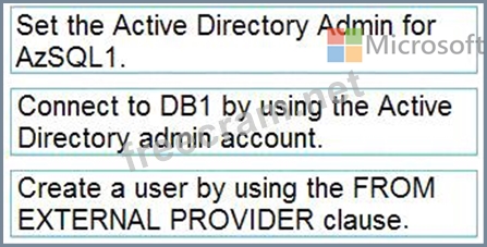 You need to create a contained database user in DB1 who will use Azure Active Directory (Azure AD) for authentication.