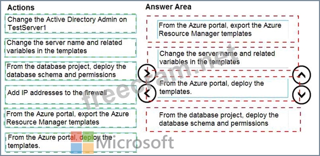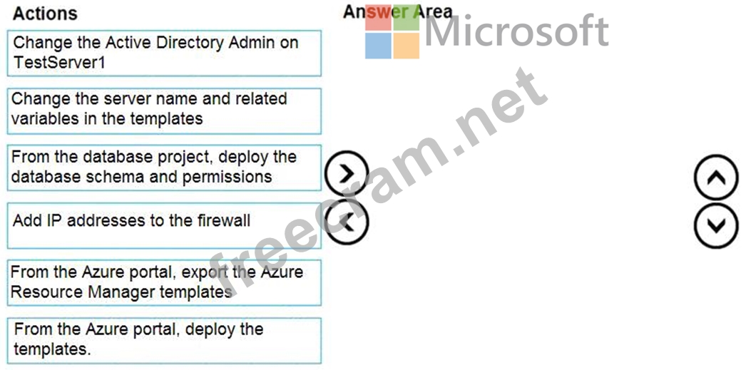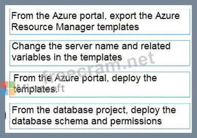 You need to populate a new resource group named App1Test with the DB1 database and an Azure SQL Server named TestServer1. The resources in App1Test must have the same configurations as the resources in App1Dev.