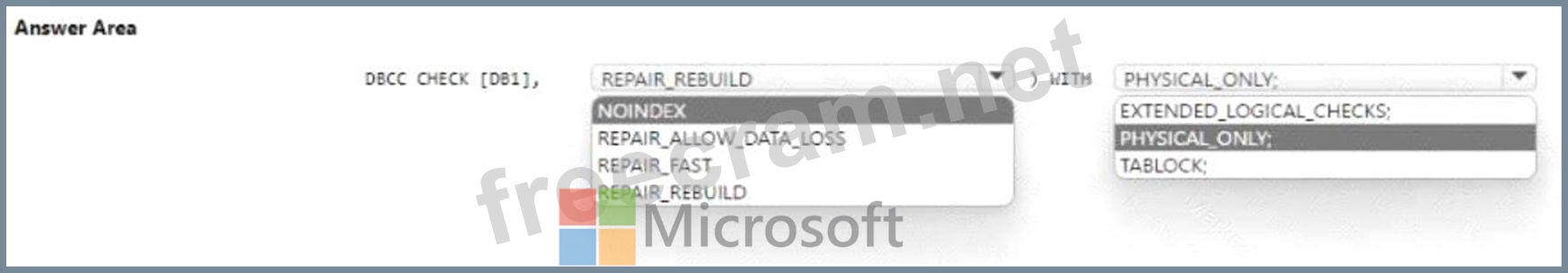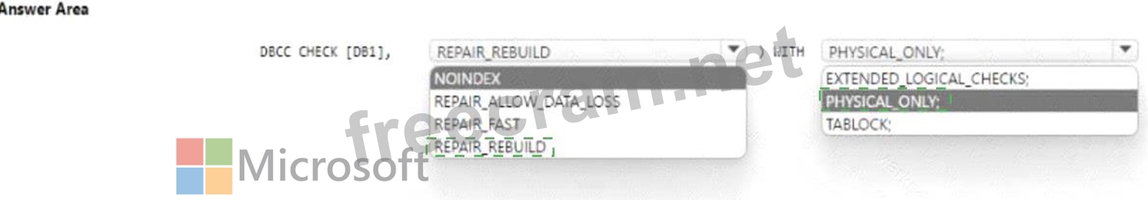You need to identify and repair any physical or logical corruption in DB1. The solution must meet the following requirements: