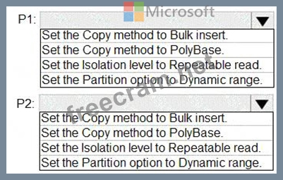 * P2:Uses a copy activity to copy data from text-delimited files in an Azure Data Lake Storage Gen2 account to a nonpartitioned table in a dedicated SQL pool of WS2 You need to configure P1 and P2 to maximize parallelism and performance.