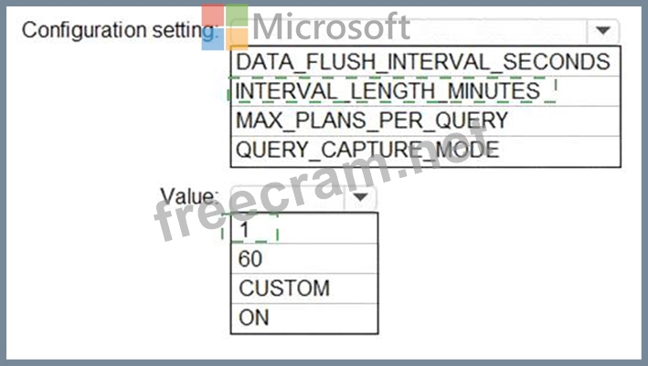 Which configuration setting should you modify and which value should you configure? To answer, select the appropriate options in the answer area.