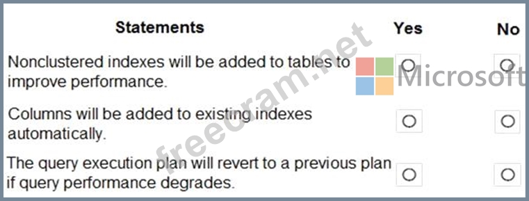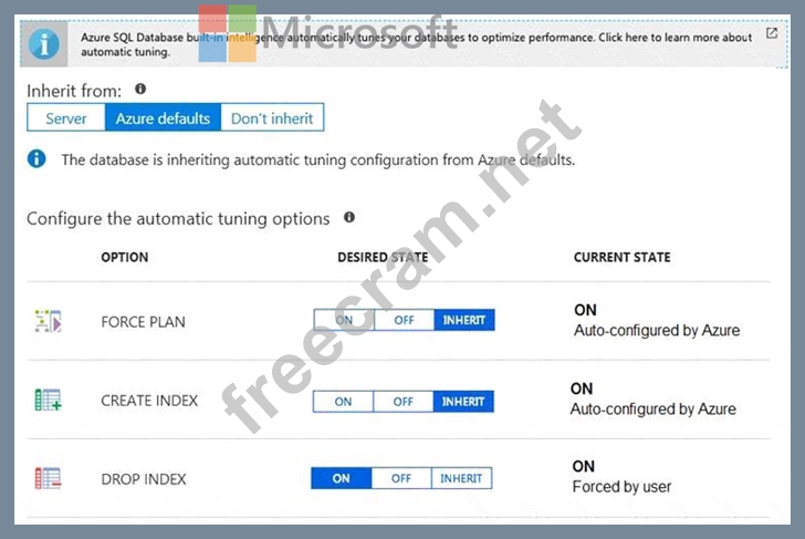 Question 57: You have an Azure SQL database named DB1. The automatic tuni...