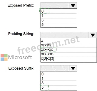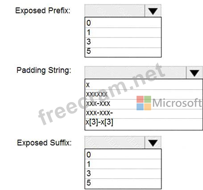 How should you configure the dynamic data mask? To answer, select the appropriate options in the answer area.