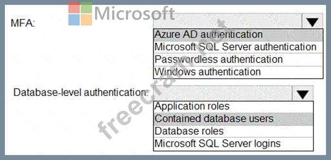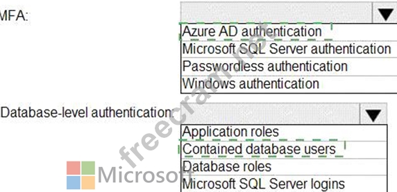 You need to recommend an authentication solution for Pool1. The solution must support multi-factor authentication (MFA) and database-level authentication.
