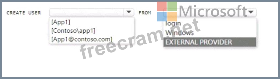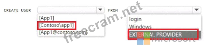 You have an Azure subscription that is linked to an Azure AD tenant named contoso.com. The subscription contains an Azure SQL database named SQL 1 and an Azure web named app1. App1 has the managed identity feature enabled.