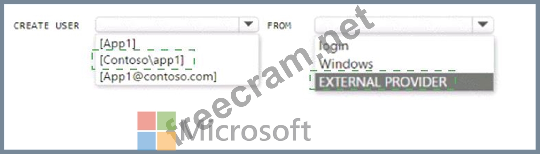 How should you complete the Transact-SQL statement? To answer, select the appropriate options in the answer area.