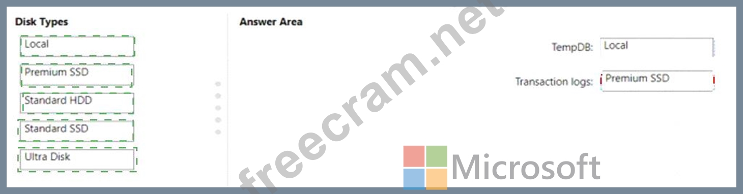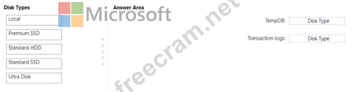 Which type of disk should you use for each workload? To answer. drag the appropriate disk types to the correct workloads. Each disk type may be used once, at all. You may need to drag the split bar between panes or scroll to view content.