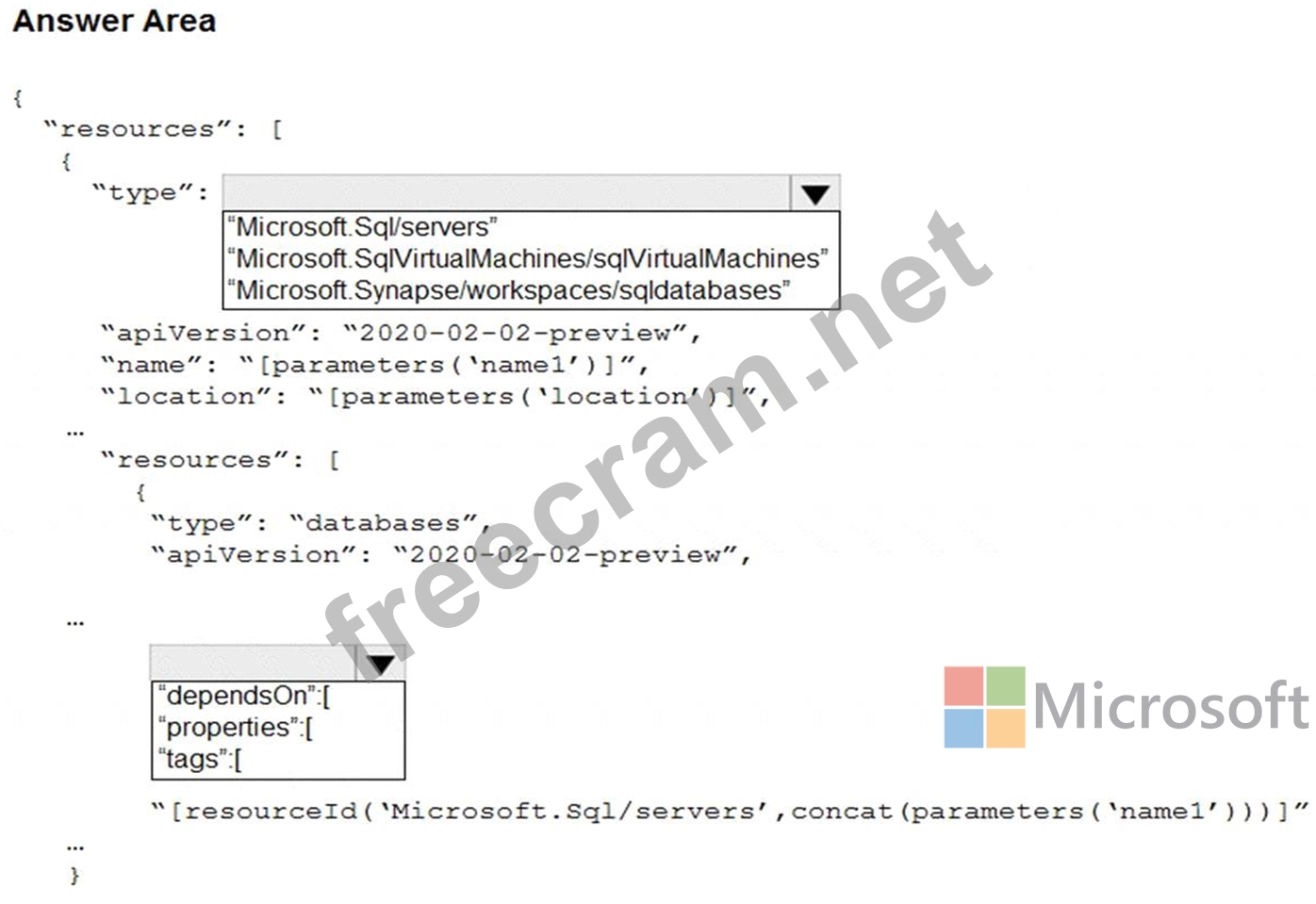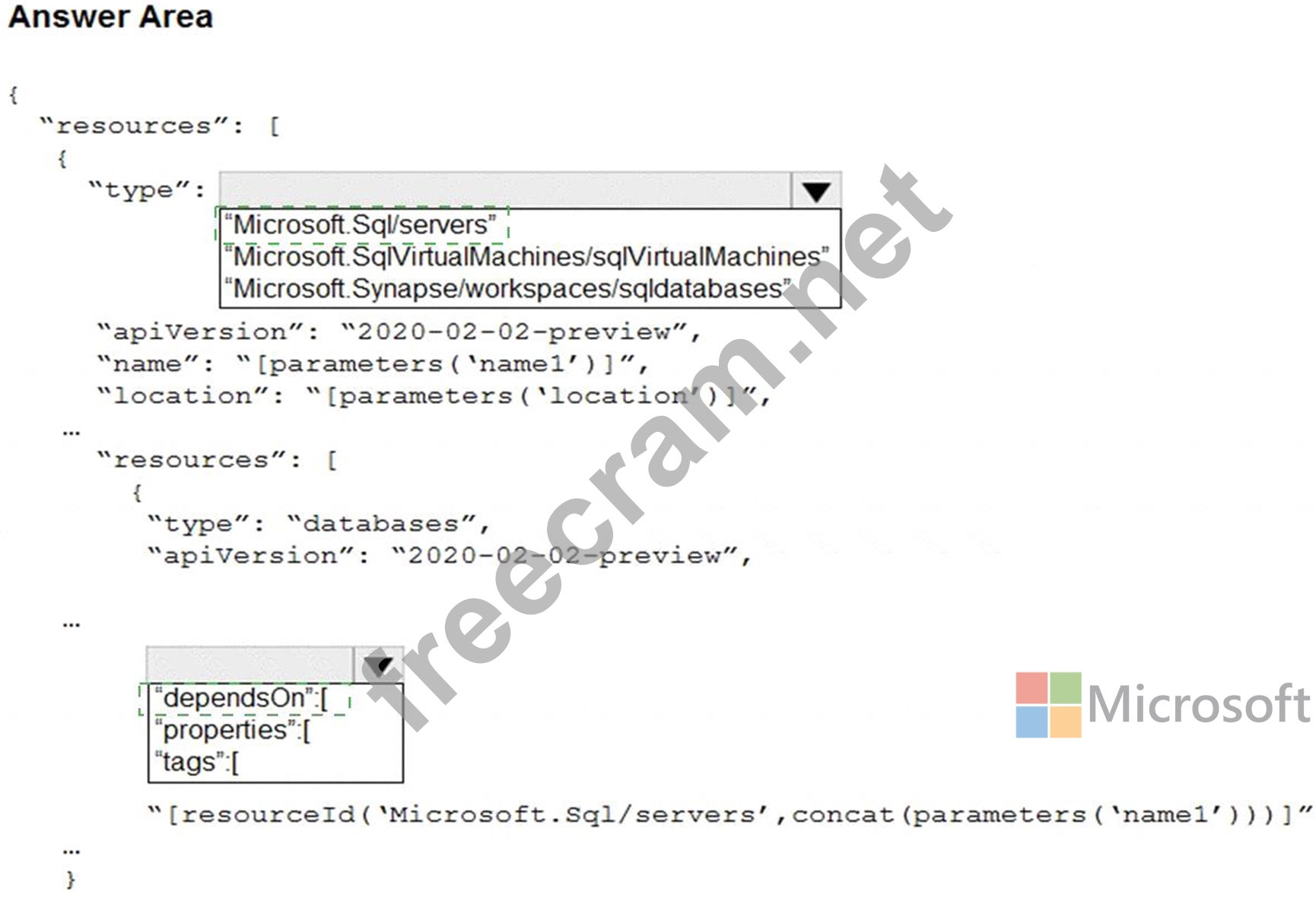 Question 45: You have the following Azure Resource Manager template. (Exh...