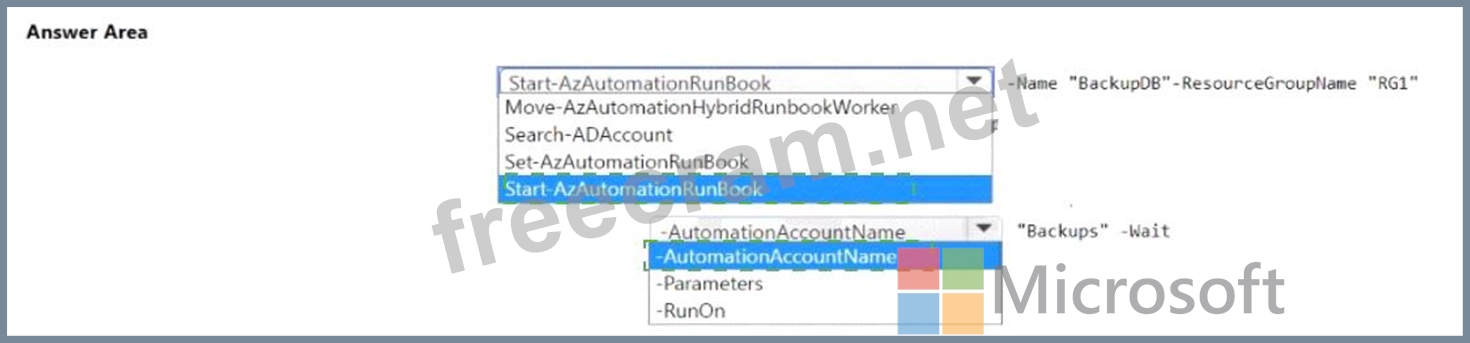 You need to use an Azure Automation runbook to initiate a SQL Server database backup on VM1.