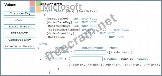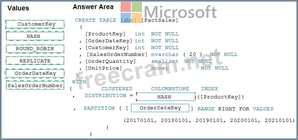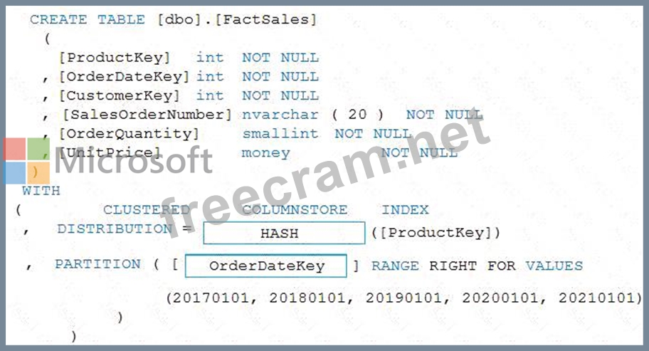 Question 41: You plan to create a table in an Azure Synapse Analytics ded...
