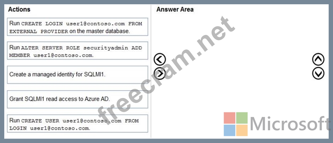You have an Azure Active Directory (Azure AD) tenant named contoso.com that contains a user named [email protected] and an Azure SQL managed instance named SQLMI1.