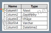 You have an Azure SQL database named DB1. DB1 has a table named Table1 that contains the following columns.