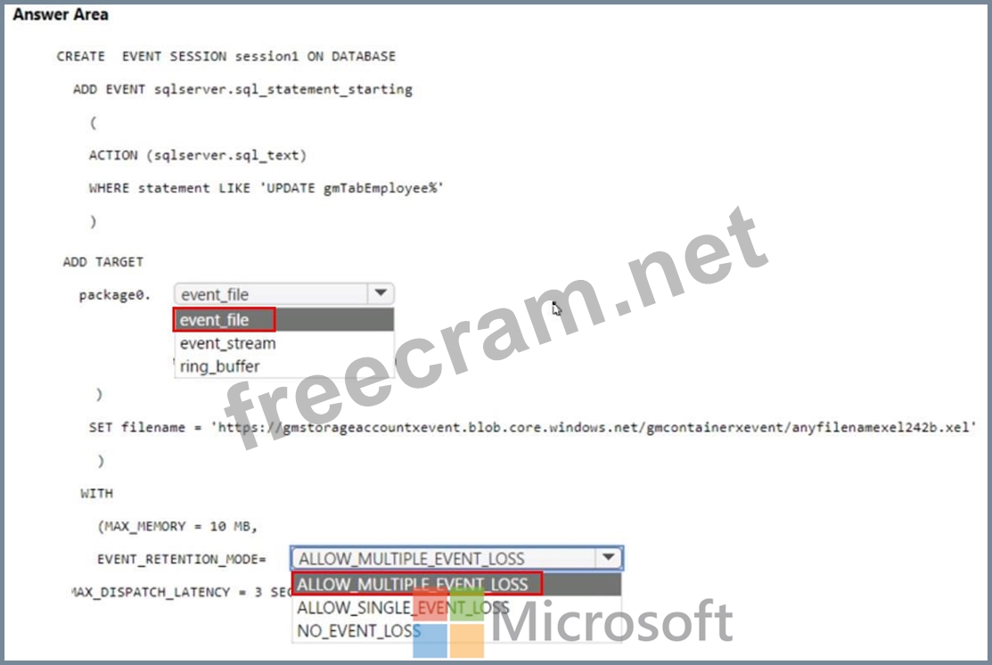 How should you complete the Transact-SQL statement? To answer, select the appropriate options in the answer area.