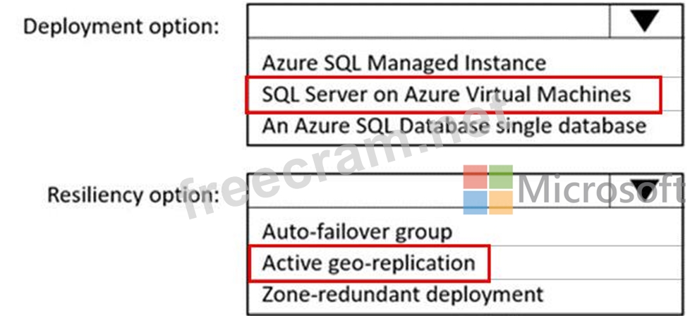 You need to identify which deployment and resiliency options meet the following requirements: