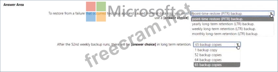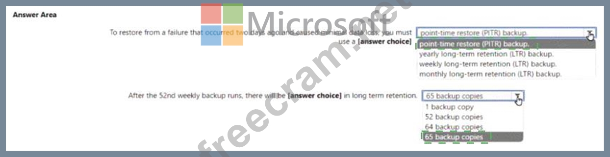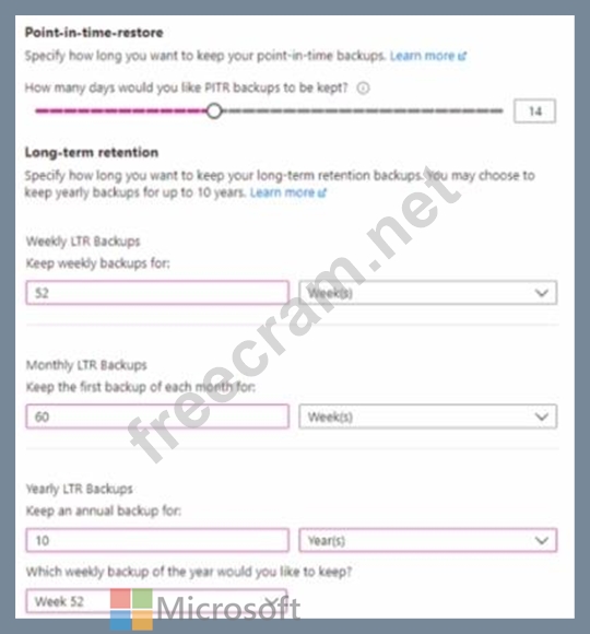 Question 31: You configure a long-term retention policy for an Azure SQL ...
