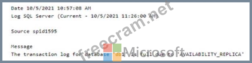 Question 57: You have a database named db1. The log for db1 contains the ...