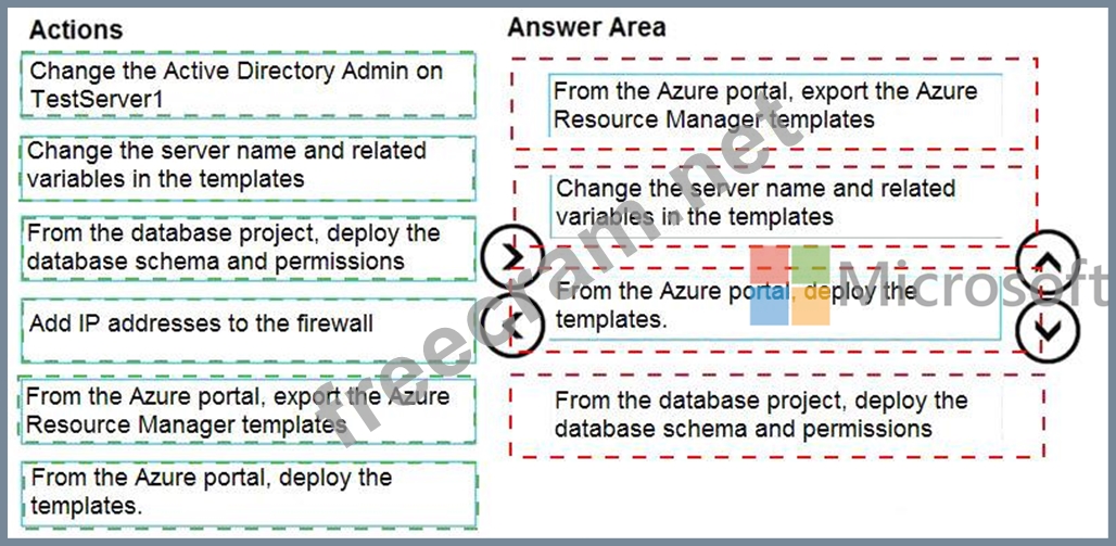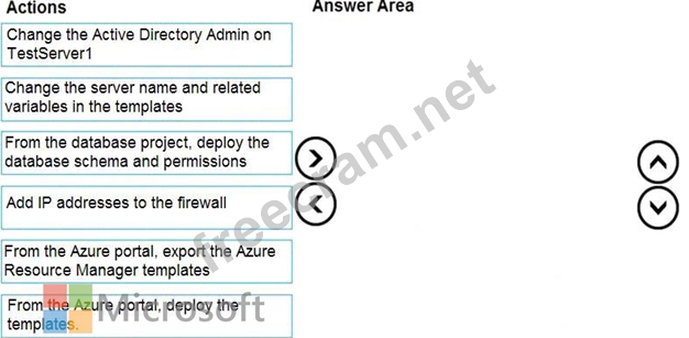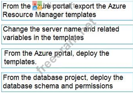 You need to populate a new resource group named App1Test with the DB1 database and an Azure SQL Server named TestServer1. The resources in App1Test must have the same configurations as the resources in App1Dev.