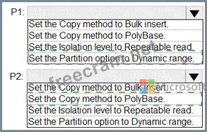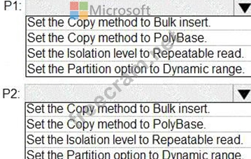 * P2:Uses a copy activity to copy data from text-delimited files in an Azure Data Lake Storage Gen2 account to a nonpartitioned table in a dedicated SQL pool of WS2 You need to configure P1 and P2 to maximize parallelism and performance.