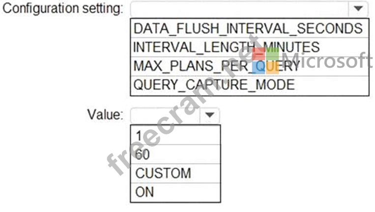 Which configuration setting should you modify and which value should you configure? To answer, select the appropriate options in the answer area.